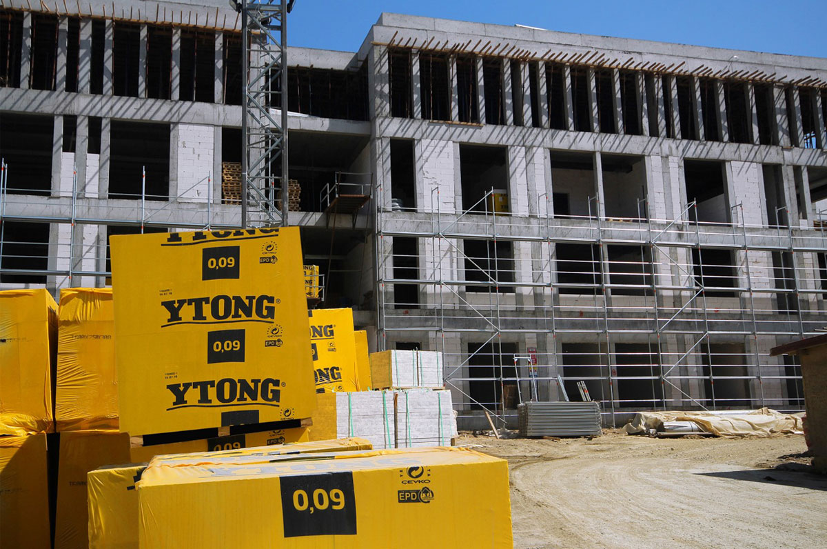 Kampüste yer alan binaların duvarları için “Ytong 0,09” blok ürünü kullanıldı. Rektörlük binasında 30 cm kalınlığında, yaklaşık bin metreküp 0,09 duvar bloğu kullanıldı.